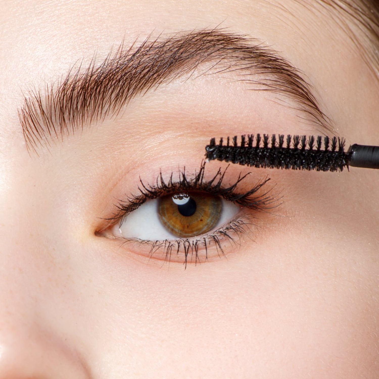 余分な液をボトルの口でしごいた後、上まつ毛の上側をなでおろすように軽く塗り、次に下側からブラシ部分をまつげの根元に当て、押し上げた状態で数秒キープしてから、下から持ち上げるようにして塗ります。
